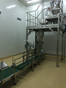 此项目包含小袋拆包投料站,真空输送机和混合配料以及小袋包装线