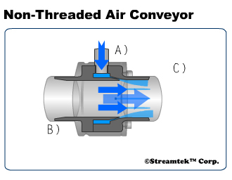 (A)压缩空气由一个标准NPTF进气口A,流入并充满整个环型气室。