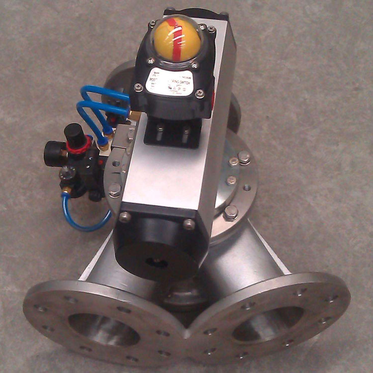 三通换向阀俗称分向阀,是应用于固体物料(粉沫、颗粒物料、粉粒混合物等)输送系统中用于切换管道中物料流向的专用设备,完全密封的结构可适用于室外环境。根据应用分为重力式和气力式两类。